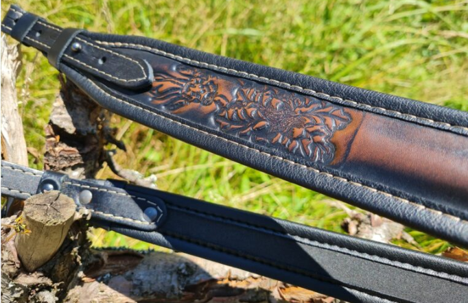 Kožený řemen na zbraň podšitý protiskluzovou gumou retro
