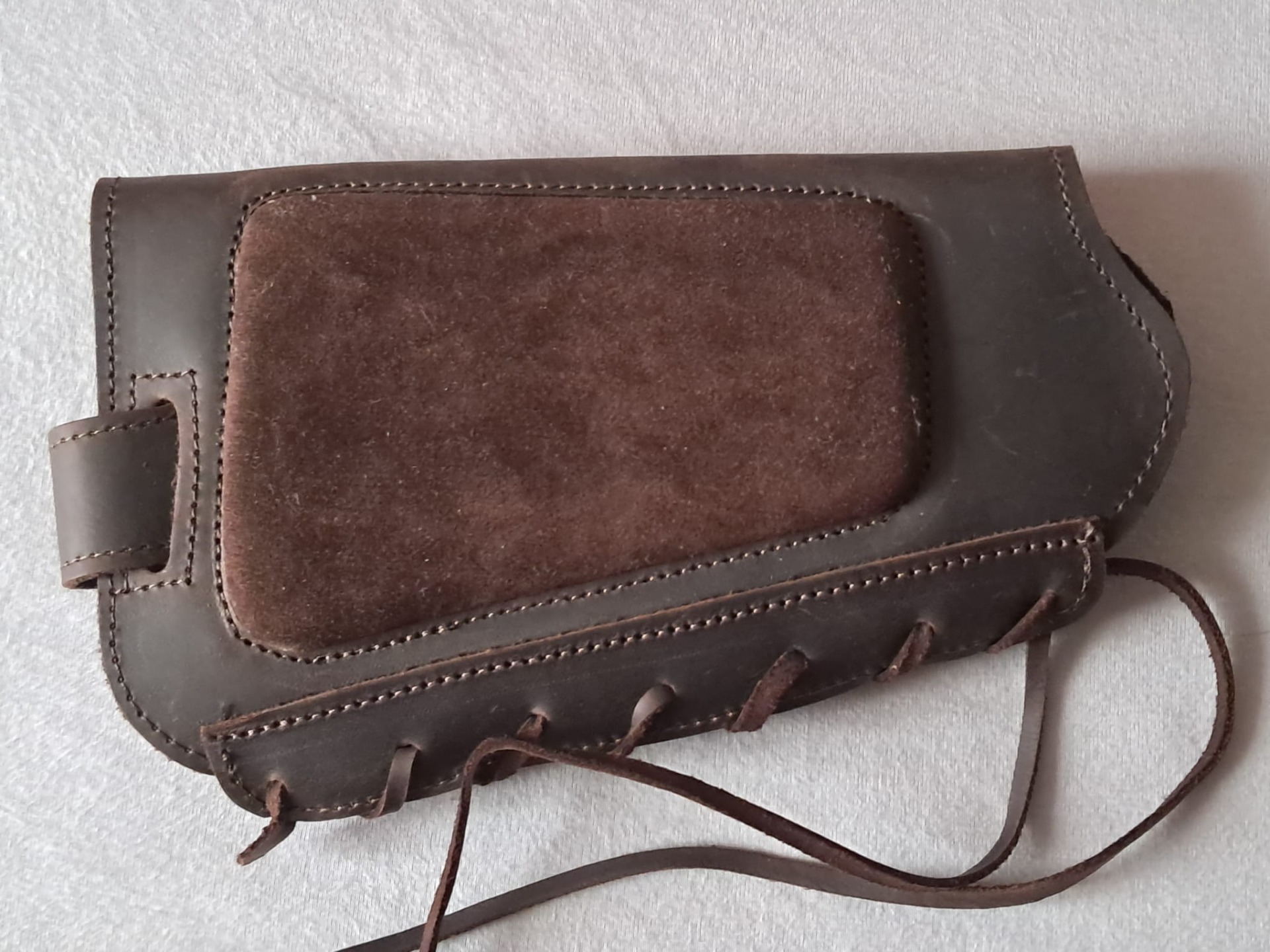 Kulový návlek na pažbu kožený zajišťuje lepší stabilitu zbraně při střelbě. Povrch kůže neklouže, takže pažba pevně sedí v rameni a střelec má větší kontrolu nad zbraní. Tento doplněk oceníte zejména při delším lovu nebo tréninku, kdy komfort hraje velkou roli. Návlek je opatřen polštářkem pro opření tváře. Na fotografii náboje 8x57.