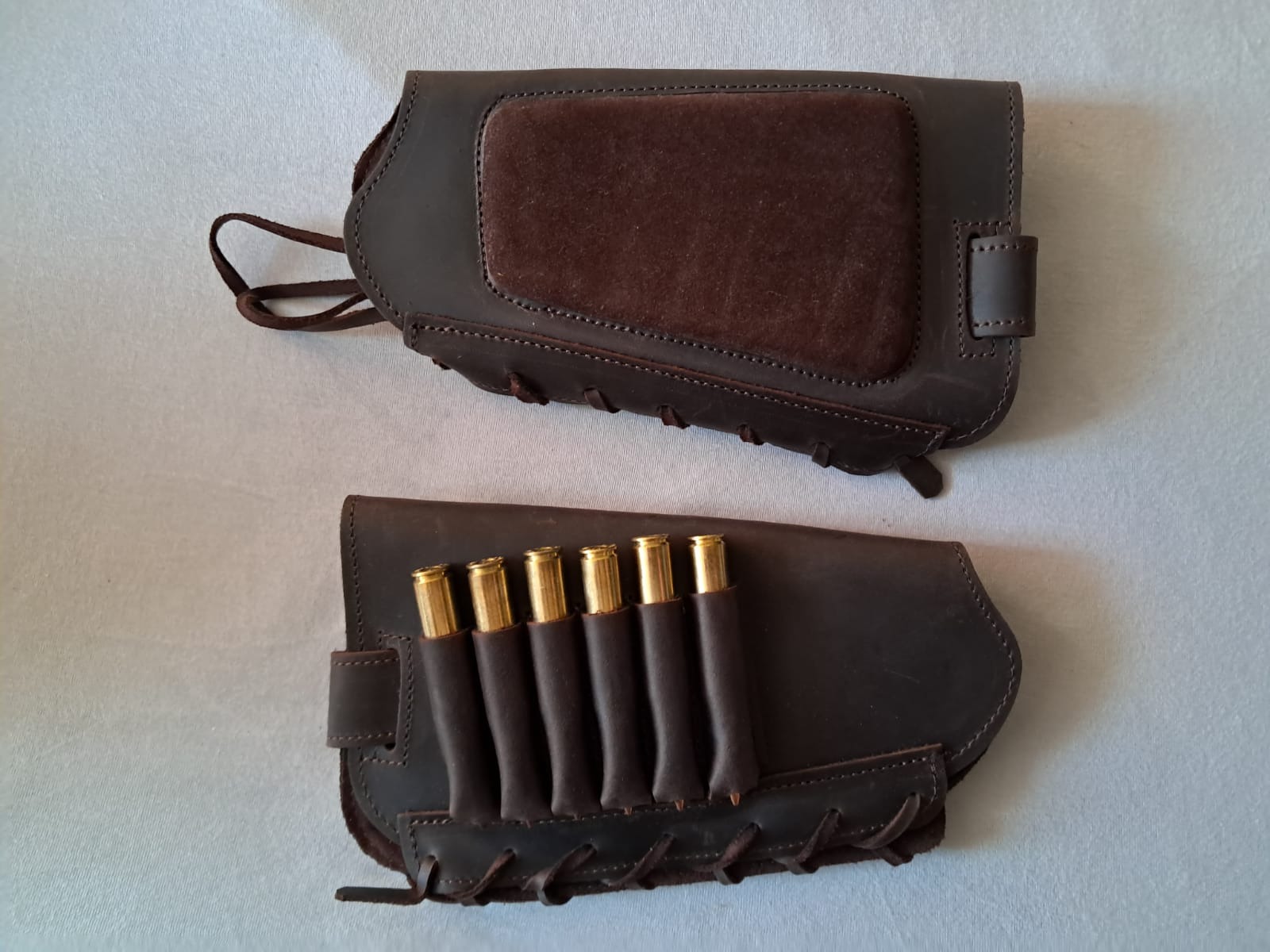 Kulový návlek na pažbu kožený zajišťuje lepší stabilitu zbraně při střelbě. Povrch kůže neklouže, takže pažba pevně sedí v rameni a střelec má větší kontrolu nad zbraní. Tento doplněk oceníte zejména při delším lovu nebo tréninku, kdy komfort hraje velkou roli. Návlek je opatřen polštářkem pro opření tváře. Na fotografii náboje 8x