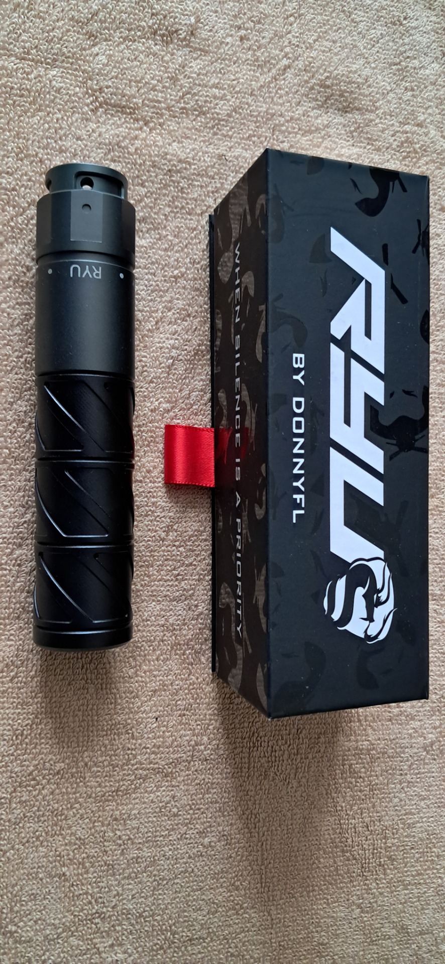 Moderátor DonnyFL Ryu ½ má modulární design, který se skládá ze základny, která jde na adaptér závitu QD, a také ze tří přepážek a přední desky. Tato modularita umožňuje nastavit délku moderátoru a délka - množství přepážek - bude mít přirozeně vliv na účinnost moderátoru. Přepážky jsou opatřeny závitem, takže je lze bezpečně upevnit a zabrání jejich náhodnému vysunutí. Celý moderátor i závitový adaptér jsou vyrobeny z nárazuvzdorného hliníku.