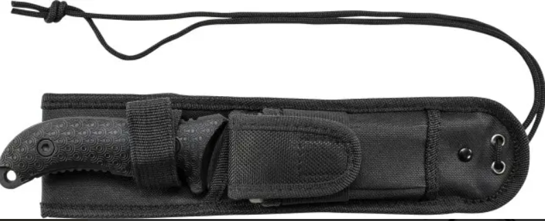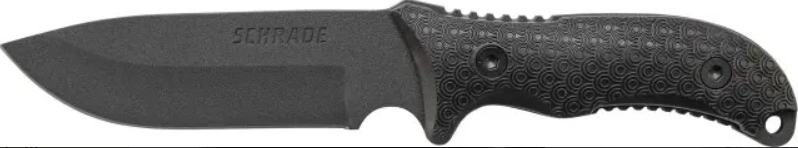 Kvalitní nůž značky Schrade s pouzdrem z polyesterového vlákna. Povrch čepele je práškovaný, čepel je proto matná a nerezne.