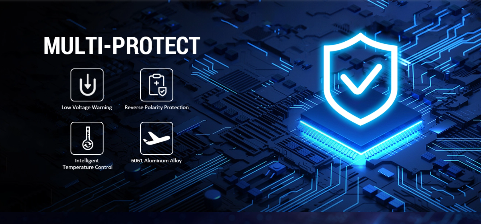 - Ochrana proti přepólování pro ochranu před nesprávnou instalací baterií.