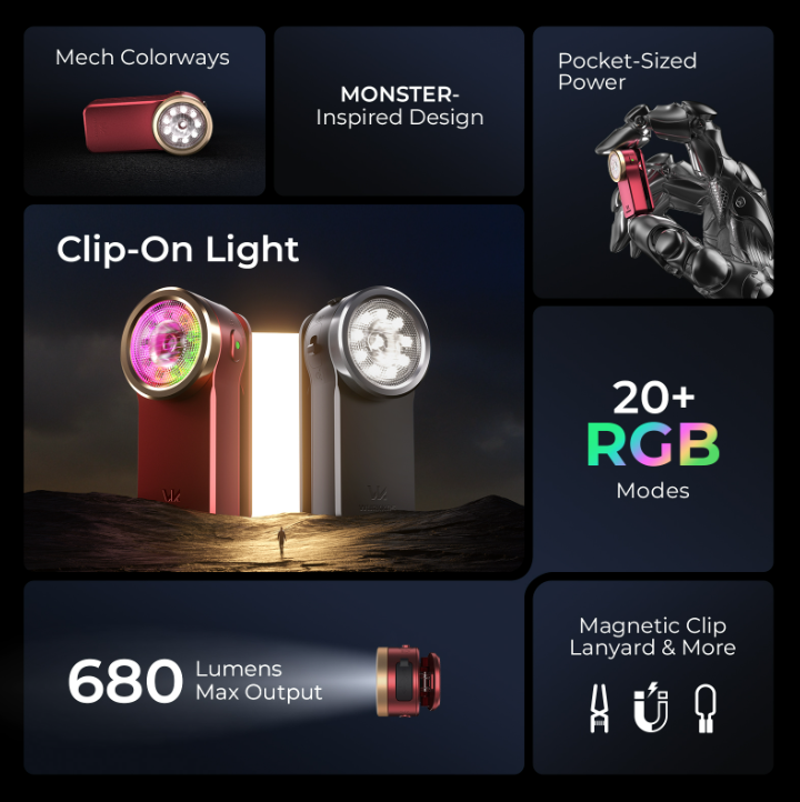 kapesní EDC svítilna HD03, LED, USB-C, 680L, 600mAh, RGB, 180m